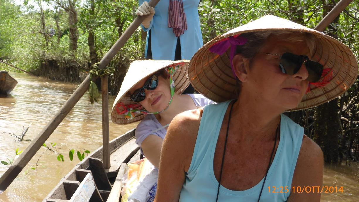 Ripartiamo e dopo circa 2 ore e una sosta per turisti (sigarette e semi per l'orto di Anna e Franca) ci prepariamo per un giro in barca. R compra gli occhiali da sole e M il tradizionale cappello conico e ingombrante.