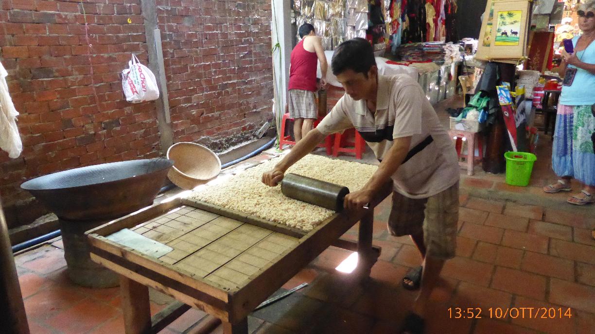 Abbiamo bevuto te, fatto acquisti, e mangiato/assaggiato di tutto un po', poi di nuovo a piedi e infine raggiungiamo la splendida tenuta con frutteto, scelta per il pranzo, con una barca a motore. Pranziamo, verso le 15.30, sotto un portico e sotto un acquazzone mai visto! Un pranzo squisito e vario dove per� di acqua, birra e caff� abbiamo speso quasi quanto la cena della sera prima (500.000 Dong).