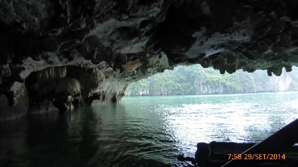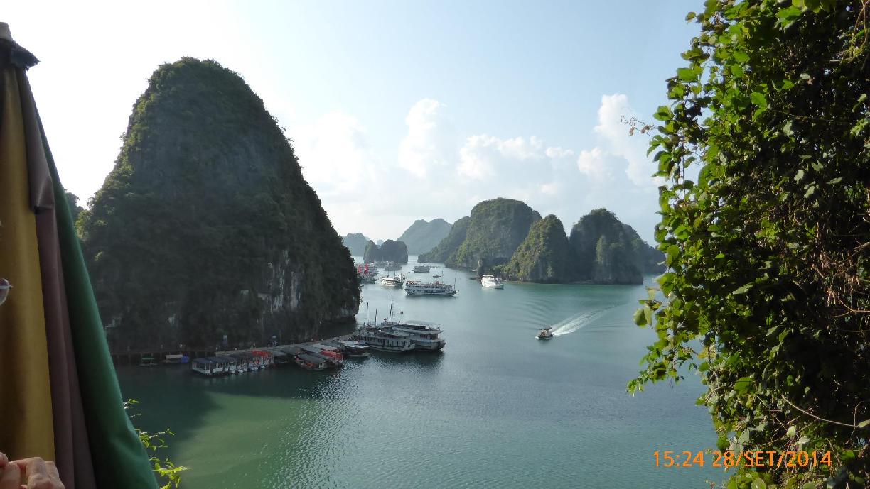 Breve gita in barca piccola al cratere (baia chiusa) di Hang Luon (dove M sfonda un'asse nel salire sulla barchetta) e poi panorama bellissimo, risate, chiacchiere, dormitine, cibo, e � finalmente acquisti: balsamo di tigre, magneti, maglietta nera XXXL.