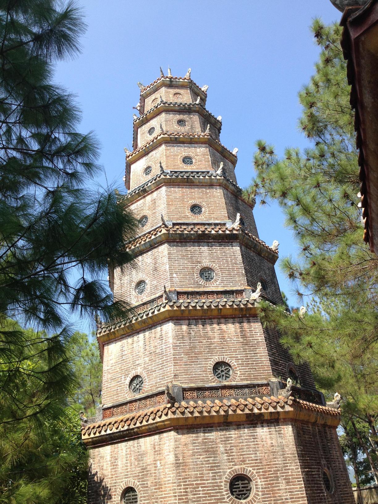 Arriviamo alla Pagoda Thien Mu, "La Dama celeste", (220 gradini) a 7 piani, con ampio giardino e scuola Buddista con ragazzini che giocano con movenze da arti marziali, tunica e treccia. Chanel ci spiega che la treccia sar� tagliata al termine del noviziato quando diventeranno monaci dalla testa rasata ("Tanti capelli tanti problemi"). Nel giardino ci sono splendidi bonsai.