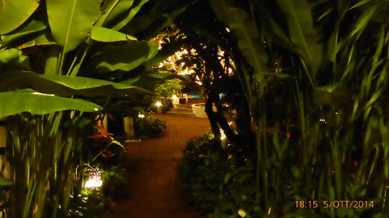 L'Hotel, che raggiungiamo subito dopo, l'Ancient House Resort, � a 5 km dal centro storico. Siamo in una giungla di banane, con la camera sulla piscina. Bellissimo. Le ragazze hanno una camera piccola e R si ammacca urtando sedie, tavoli e valige. R e M staccano l'acqua calda nel vano tentativo di spegnere una luce (anche noi abbiamo avuto problemi e alla fine abbiamo svitato la lampadina, non avendo individuato l'interruttore).