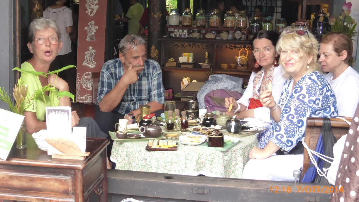 A pranzo ci fermiamo alla sala da te gestita dai sordomuti e pranziamo con ottimi biscottini e strani t�. Restiamo sino a quando non ci cacciano a gesti.