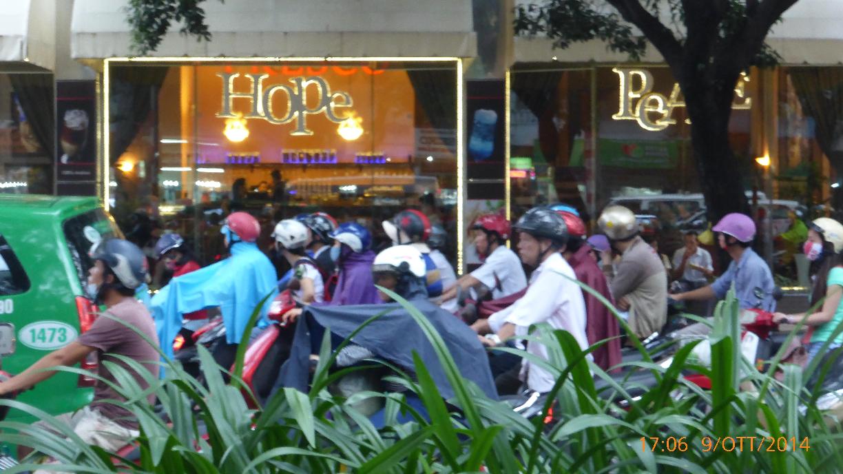 La visita di Saigon prosegue in auto ma non vediamo quasi nulla! Le visite a Notre Dame, la Posta e il Quartiere cinese, con annesso mercato, sono rinviate a domani.