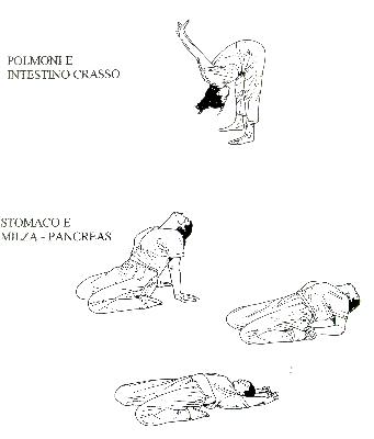Masticare, spalancare la bocca, ruotare la mandibola, vocalizzare Far scorrere la lingua lungo le gengive, degluttire e rilassarsi In seiza, nserire le dita nel plesso solare e piegarsi in avanti Posizione seiza