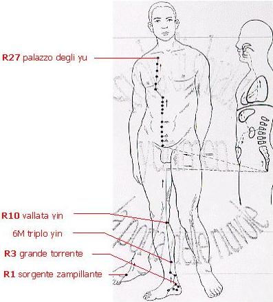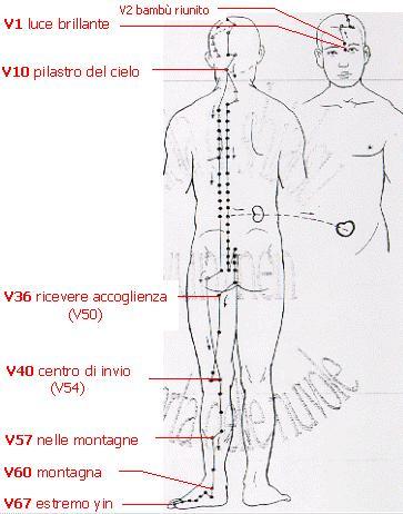 controlla la purificazione dell'organismo attraverso i fluidi, indicazioni generali (V1, V10, V57, V67) e locali (tutti tranne V67) |