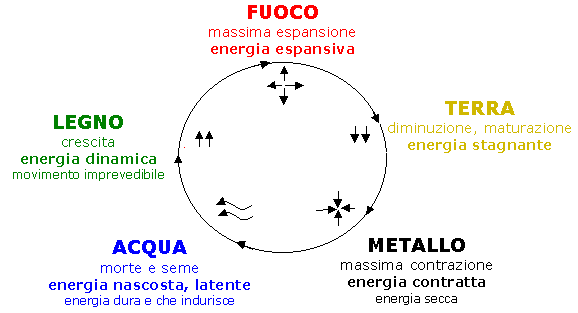 I 5 movimenti (o elementi) sono costitutivi sia del micro che del macro cosmo: sono modi di descrivere la direzione dell'energia, sono movimenti dell'energia.