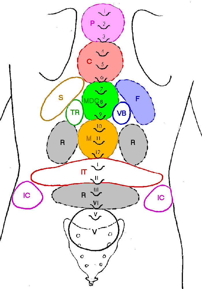 - con m.m. sulla zona di rene, la mano con le dita verso la testa esplora P,C, MDC, M